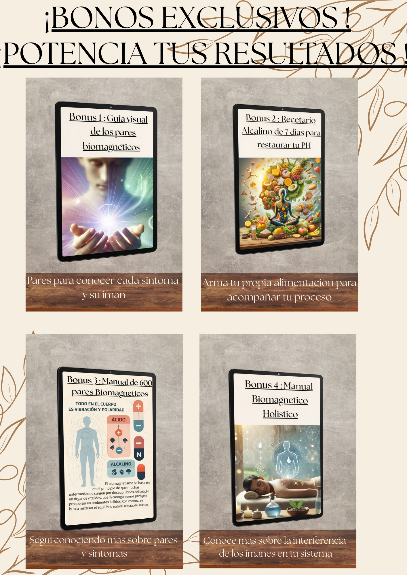 ¡Maravilloso! Comencé aplicando el biomagnetismo en mi familia y los resultados fueron tan buenos que ahora tengo una pequeña consulta. El capítulo sobre equilibrio del pH cambió mi vida, mi acidez estomacal desapareció. Los bonus son oro puro con información práctica y fácil de aplicar.